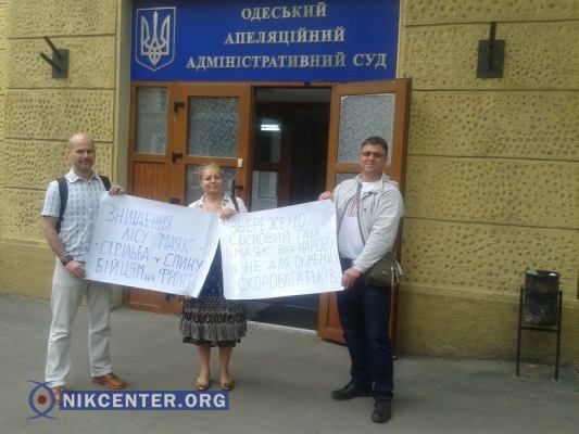 Спустя 2 дня, 28 мая, в том же суде состоялись четыре судебных заседания по лесу «Маяк». Чтобы выразить мнение обществаенности и добиться законного рассмотрения дел, в этот день николаевцы прямо в залах судебных заседаний развернули плакаты с требованием справедливости. Что символично, один из плакатов: «Уничтожение леса «Маяк» — стрельба в спину бойцам на фронте» — держал уже демобилизованный боец 79-й аэромобильной бригады Роман Бойко.