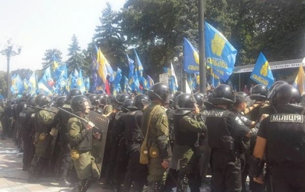 Как передает корреспондент агентства "Интерфакс-Украина", митингующие начали раскачивать установленное вокруг парламента металлическое ограждение. На это среагировали правоохранители. Было видно, что в сторону правоохранителей полетели бутылки с водой и другие предметы. В ответ правоохранители применили резиновые дубинки.