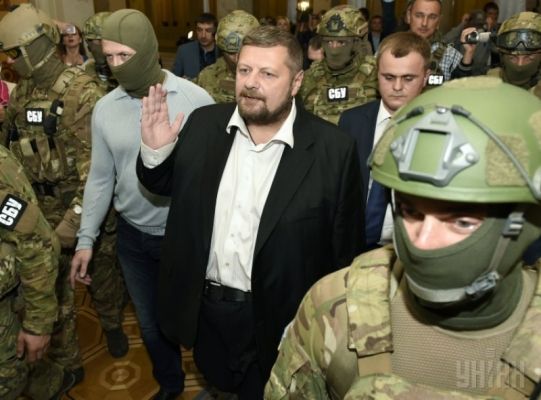 Позже Мосийчук в сопровождении сотрудников СБУ вышел во внутренний двор Рады. Не надевая наручники, его посадили в белый микроавтобус.