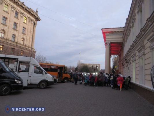 Вечером 28 декабря несколько маршрутных такси вместо перевозки пассажиров по маршрутам № 62 («мкр. Намыв — мкр. Терновка») и № 51 (ул. Б. Морская – ОАО «Вадан Ярдс Океан») простаивали возле Николаевского художественного академического русского драматического театра.