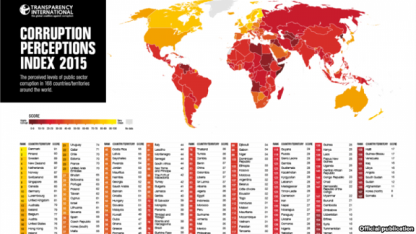 Украина заняла 130 место по уровню коррупции из 168-ми стран мира. Об этом говорится в отчете международной правозащитной организации Transparency International за 2015 год, сообщает Голос Америки.