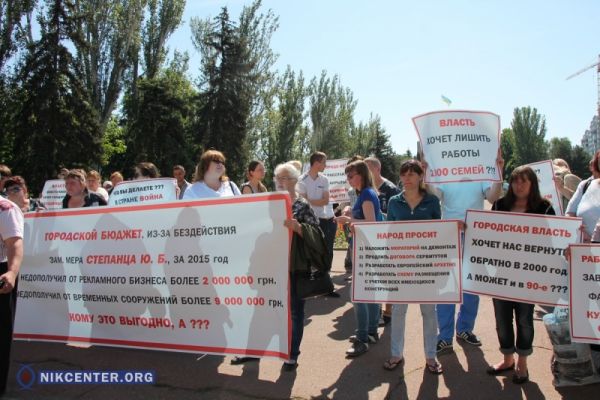 Сегодня, 9 июня, напротив здания Николаевского горсовета собрались около 30 представителей торговли в МАФах и «позвонишках».