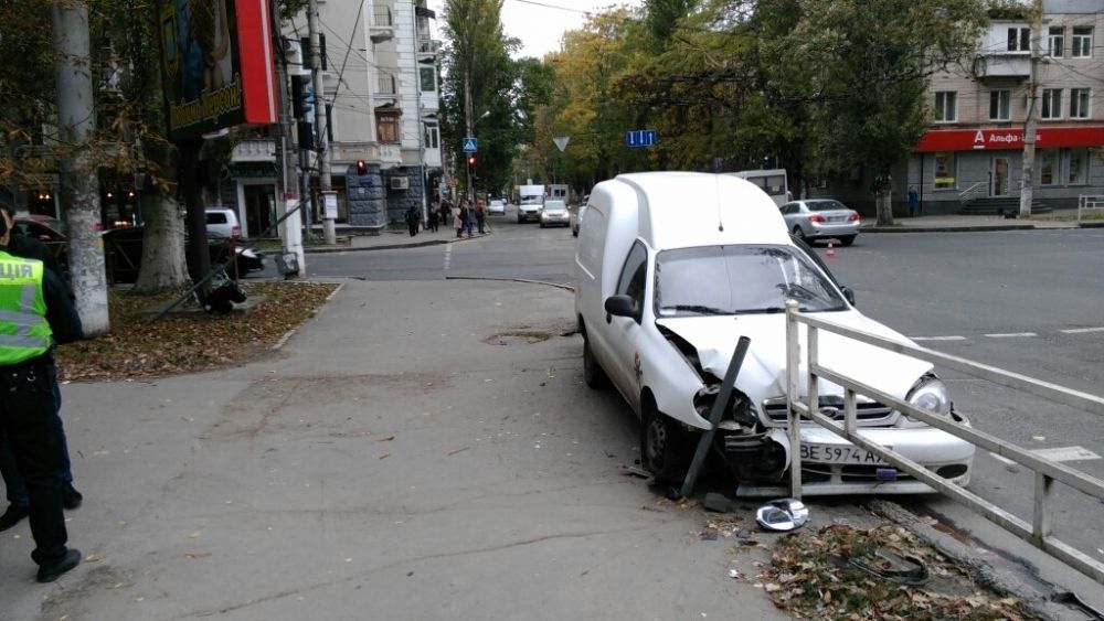 В Херсоне автомобиль сбил светофор и влетел на тротуар