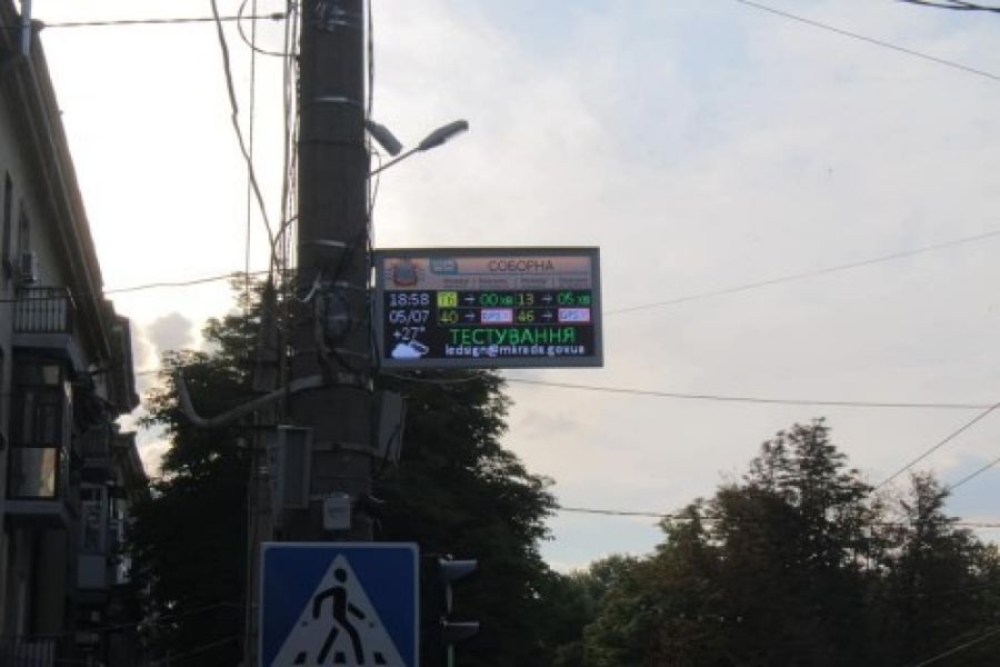 В Николаеве, около остановки общественного транспорта «ул. Соборная» на ул. Большой Морской в тестовом режиме запустили в работу информационного табло для остановок городского транспорта, на котором отображается время прибытия общественного транспорта и прогноз погоды.