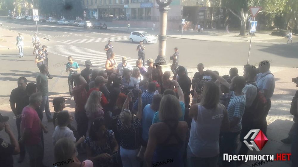 Возле мэрии Николаева вечером 22 августа собрались общественники и зоозащитники. Общественники намерены выгнать зоозащитников из под здания мэрии и снести их палатки.
