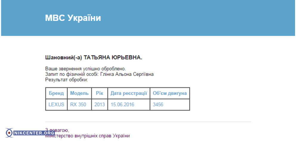 Судячи з усього, торгівля ліками настільки вигідна, що Олена Глінка може дозволити собі не тільки відпочинок в Об’єднаних Арабських Еміратах, про що свідчать її фото, опубліковані в соцмережах, а й дорогий автомобіль. Згідно з випискою з Єдиного державного реєстру МВС, їй належить Lexus RX 350 2013 р. в. вартістю понад один мільйон гривень.