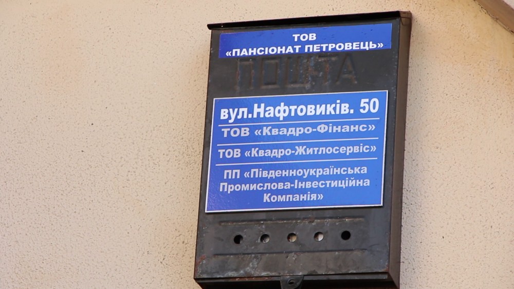 Далі наша знімальна група розшукала будівлю, де за адресою вул. Нафтовиків, 50 знаходиться ТОВ “Квадро – Фінанс”. Його засновниками значаться: Володимир Ігорович Лук’янов та Ірина Окуневська, які володіють по 40% акцій, а також Євгенія Руденко, якій належать решта 20%.