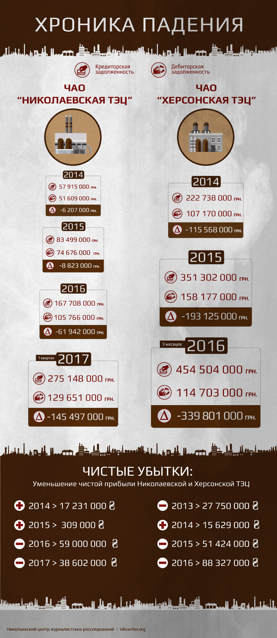 Як випливає з відповіді ФДМ, на Миколаївській ТЕЦ неухильно рухається до банкрутства: у першому кварталі 2017 року кредиторська заборгованість майже вдвічі перевищила дебіторську. Але ж ще 2014 року ця різниця становила 6 млн 207 тис. грн, у 2015 році – 8 млн 823 тис. грн, у 2016 році – 61 млн 942 тис. грн.