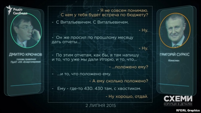Виходить, що метою братів Суркісів та їхнього менеджера Дмитра Крючкова було встановлення контролю над діяльністю напівдержавних енергопостачальних компаній: «Запоріжжяобленерго», «Черкасиобленерго», «Харківобленерго». І в цьому вони заручились підтримкою народного депутата Ігоря Кононенка. Судячи із проаналізованих діалогів, саме за його протекції та кураторства їм вдалось організувати декілька схем з виведення коштів із цих підприємств у збиток державі.