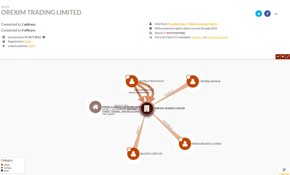 У той час, як імена керівників компаній з групи “Орексім” відомі, з’ясувати, хто є реальним власником бізнесу, не так просто – офіційно центральними фірмами з групи володіють кілька офшорних компаній.