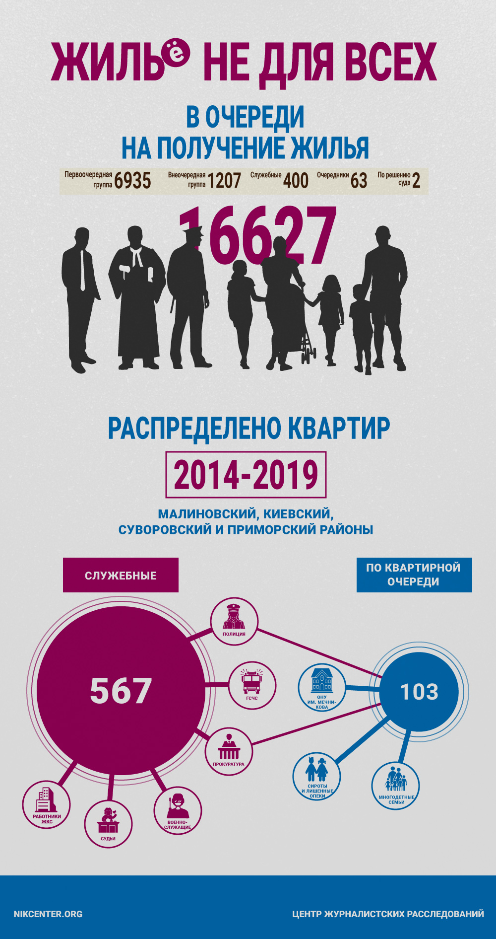 Хто ж отримує “служебки” – абсолютно безплатно, без усіляких черг і багаторічного очікування? У Малиновському районі з 2014 до серпня 2019 року їхніми щасливими володарями стали переважно посадовці житлово-комунального господарства, військовослужбовці, судді та працівники Апеляційного суду. А в Київському – за той самий період квартири отримали військові, працівники комунального господарства та один суддя. Чиновники Суворовського і Приморського районів не забажали вказати ці дані у своїй відповіді на наше звернення.