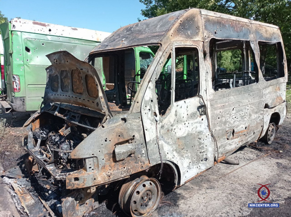 Уламками ракет та шматками бетону на приватному СТО значно пошкодило автомобілі. Один із мікроавтобусів згорів вщент.