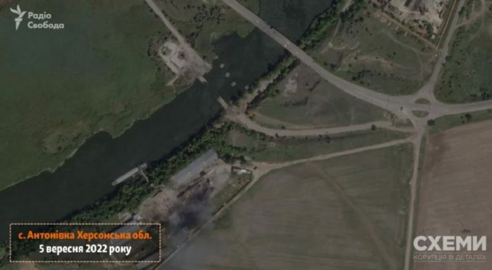 З’явились супутникові знімки знищеної понтонної переправи росіян на Херсонщині
