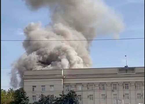 Майже одразу після інциденту пропагандистське видання «РІА новости» розмістило в мережі відео, на якому видно, як стовп диму піднімається позаду будівлі Херсонської обласної державної адміністрації.