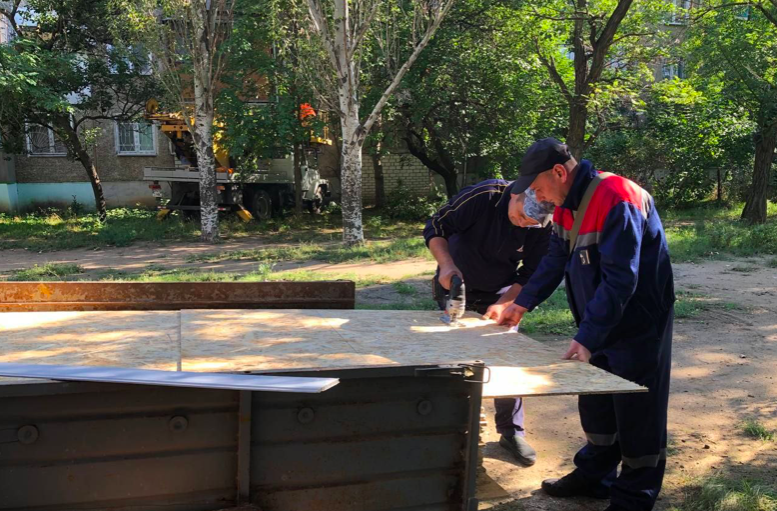 У Миколаєві триває підготовка до зими. Комунальники лагодять пошкоджені росіянами дахи, закривають розбиті вікна у будинках.