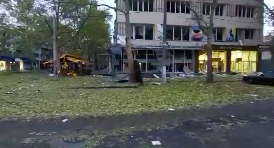 аразі відомо про пошкодження низки цивільних об’єктів в центрі міста, зокрема житлових будинків, магазинів та мережі водопроводу.