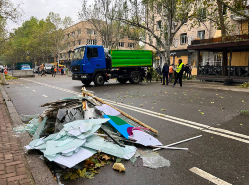 "Усі магазини, які були розміщені на перших поверхах у цих будинках, також зазнали руйнувань різного ступеню. Пошкоджене приміщення і міської виставкової зали. На місці працюють електрики та бригади підприємств «ЕЛУ автодоріг» і «Миколаївські парки». Також будівельні бригади вже забивають понівечені у квартирах вікна ОСБ плитами", – йдеться у повідомленні.