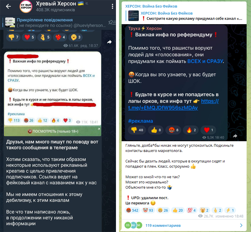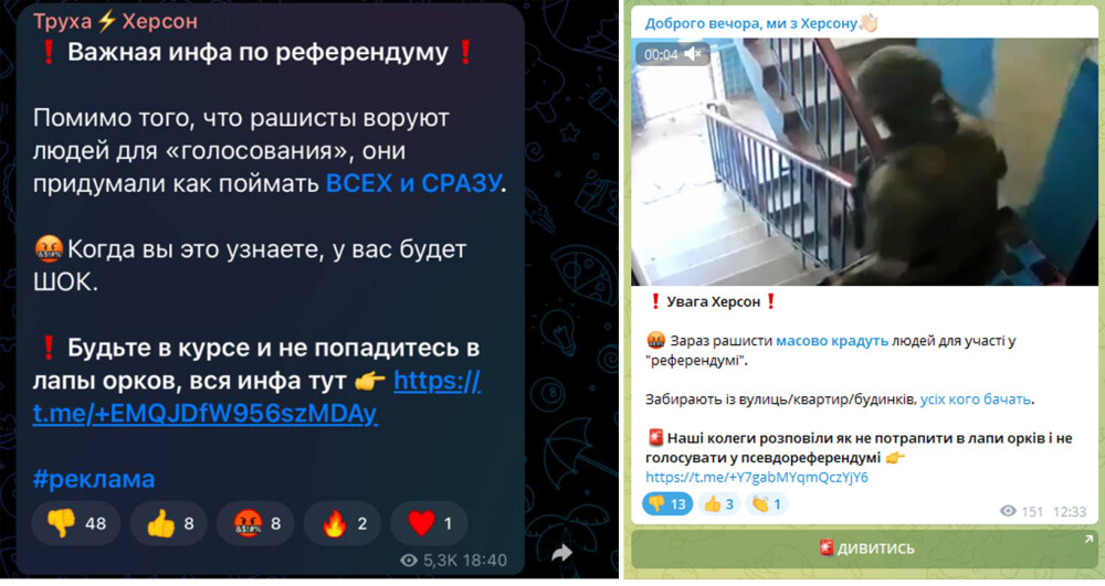 Редакційна політика цих медіа – проукраїнська та антиокупантська, але заради реклами вони розмістили сумнівні з точки зору правдивості повідомлення про викрадення херсонців для «голосування».