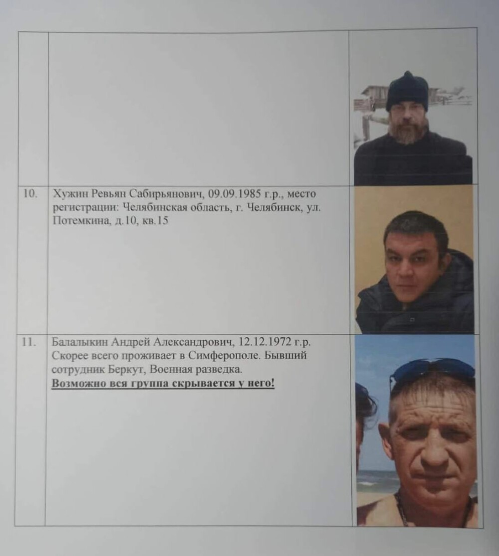 Втекли до Криму російські військові: Олександр Фірсов, Ігор Адирхаєв, Байрам Газінаєв, Дмитро Гєрманов, Геннадій Кіянов, Денис Малахов і Дмитро Мехонцев, Сергій Сухарєв, Микола Пайгозін, Рев’ян Хужин, Андрій Балаликін, Олексій Коробцев та Олександр Савін.