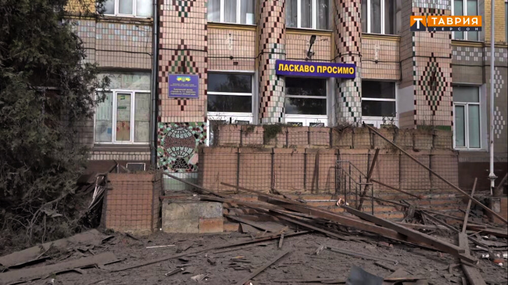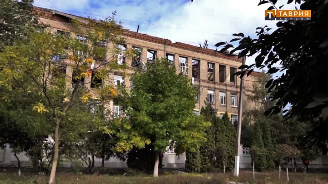 Херсонські пропагандистські медіа, які працюють на російських окупантів, в своїх повідомленнях видають захоплений окупантами і перетворений на казарми інтернат ім. Т. Шевченка за «виключно мирний об’єкт» при тому, що будівля освітньої установи використовувалася як казарми.