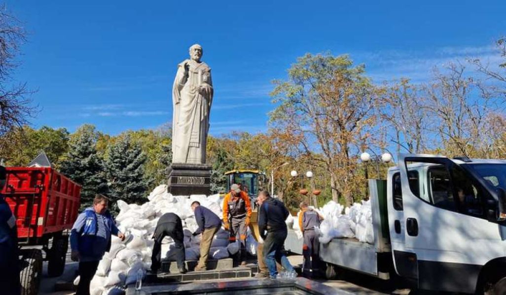 В Миколаєві обкладають мішками з піском пам’ятник Святого Миколая