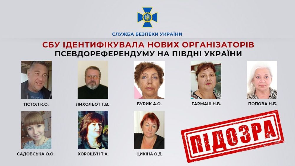 Правоохоронці ідентифікували ще вісьмох організаторів незаконних «референдумів» у тимчасово захоплених районах Херсонської та Миколаївської областей. Ці зрадники увійшли до складу місцевих окупаційних адміністрації, щоб фабрикувати результати фейкового голосування.