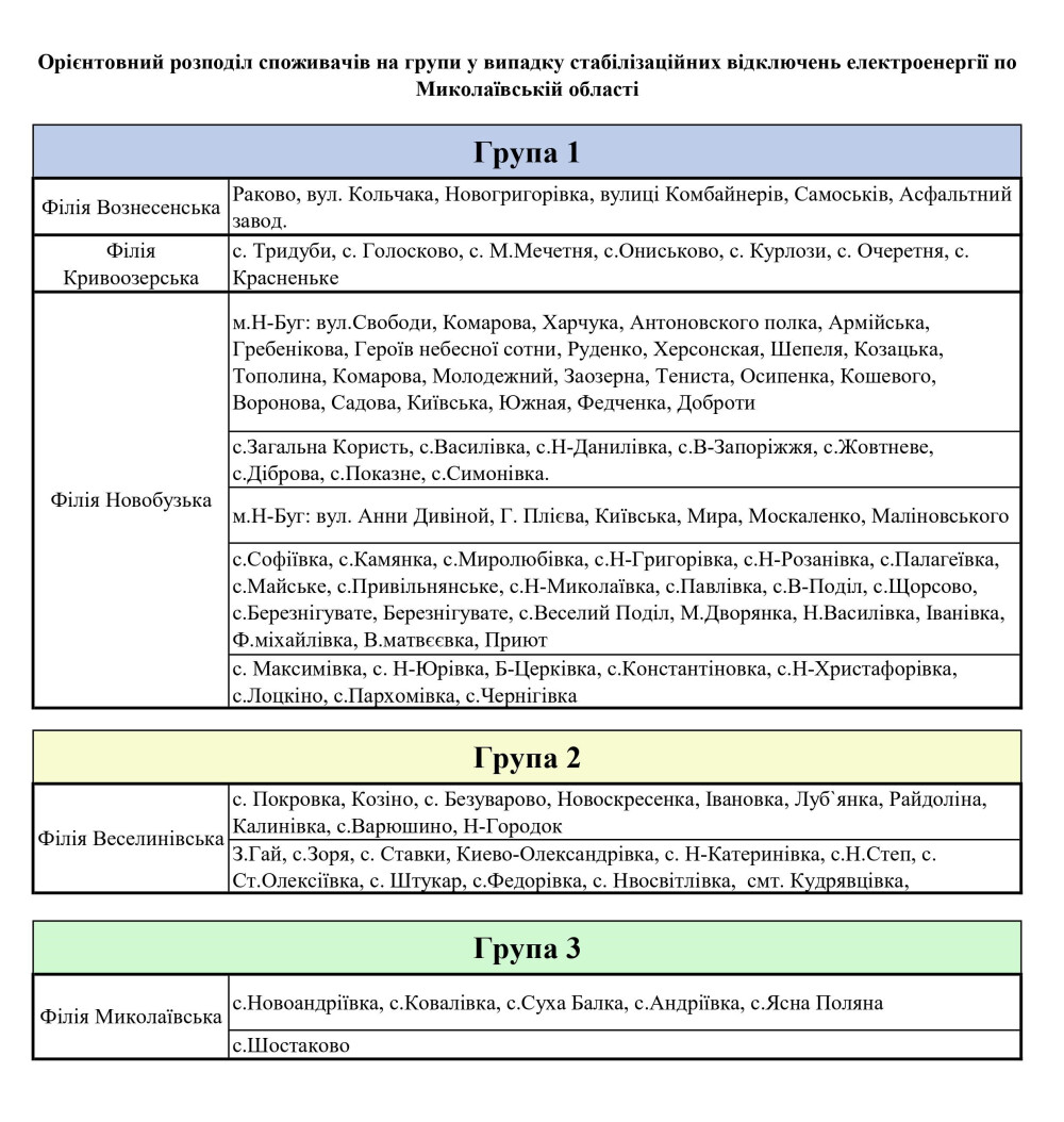 У вівторок, 25 жовтня, в Миколаївській області розпочалися стабілізаційні відключення електроенергії.