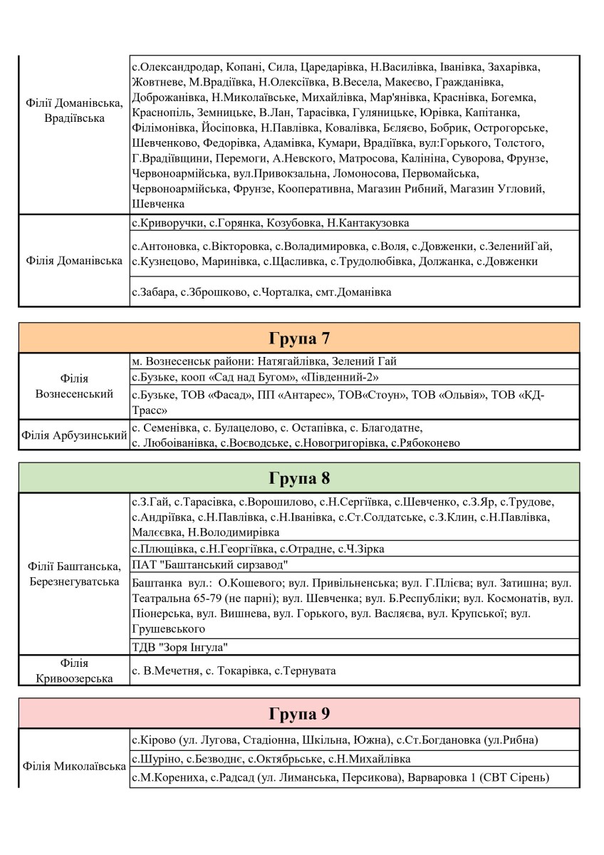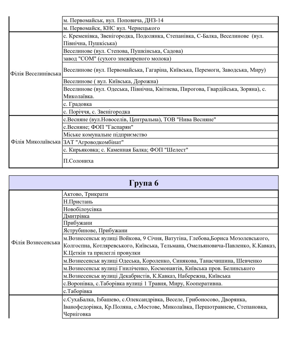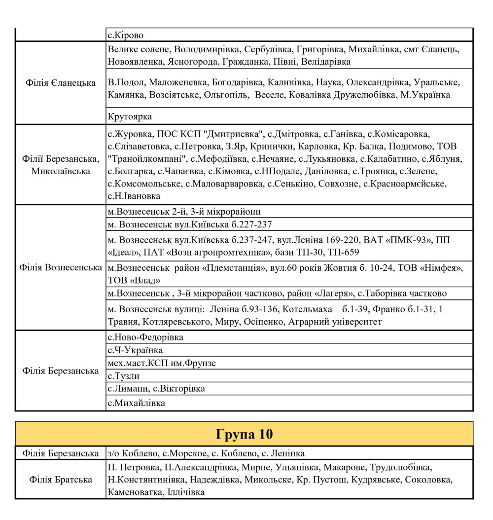 Голова ОВА опублікував також перелік груп населених пунктів та вулиць, де планують відключати електроенергію.