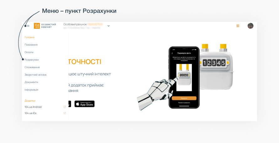 - перейдіть до кабінету 104.ua та натисніть на три лінії у лівому верхньому кутку екрану;