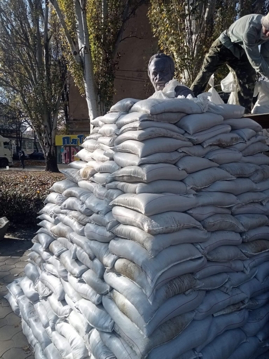 Раніше повідомлялося, що в Миколаєві обкладають мішками з піском пам'ятник Святого Миколая. 19 жовтня, працівники КП «Миколаївелектротранс» розпочали роботи із захисту пам’ятника Святого Миколая в Каштановому сквері.
