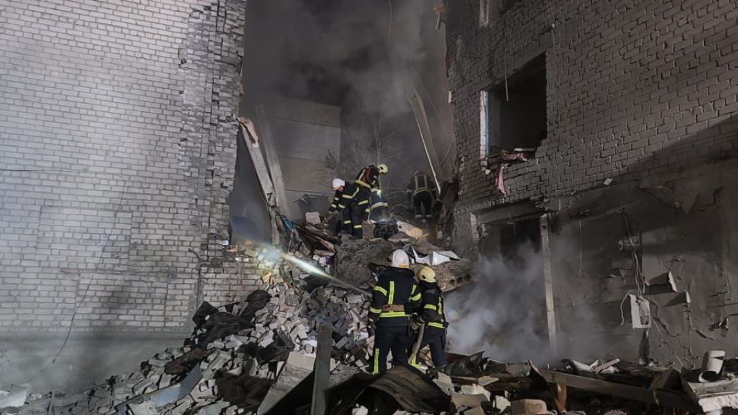Ракета влучила у багатоповерховий будинок та повністю зруйнувала будівлю з 5 по 1 поверх. На жаль, відомо про загиблих і поранених. Наразі тривають рятувально-пошукові роботи.