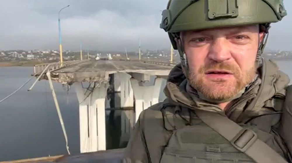 На фото і відео, оприлюднених пропагандистом Олександром Коцом, видно два повністю зруйновані прольоти мосту. Його могли підірвати окупанти, коли відступили на лівий берег Дніпра.