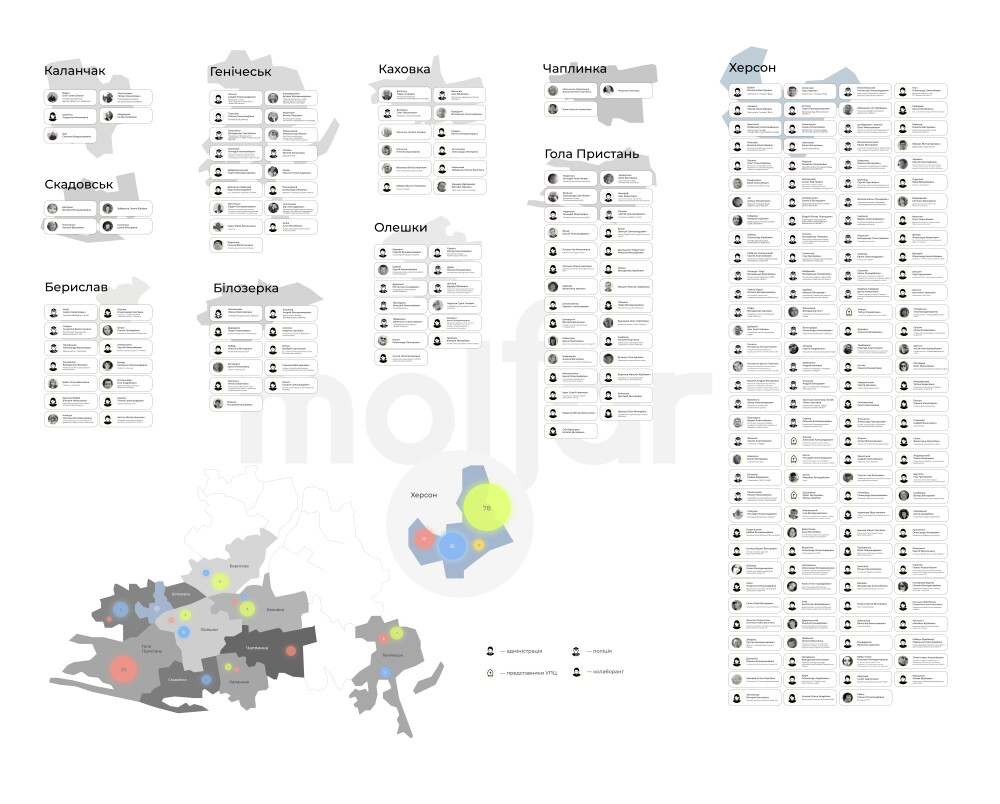 Списки склали розслідувачі OSINT-спільноти Molfar. На порталі їх можна знайти за містами областей та сферою діяльності.