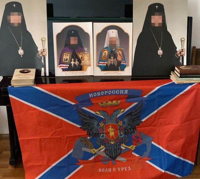 Там спецслужбовці виявили паспорти громадян рф, які належали священникам. Також серед знахідок папери окупаційної влади та прапори так званих«л/днр».