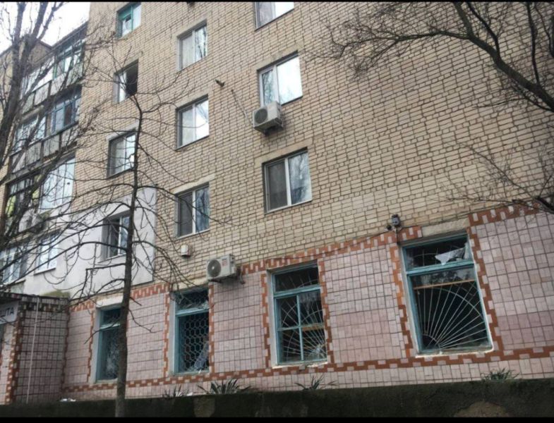 «Обстріл окупантами міста Олешки. Повибивало вікна в багатоповерхівці ЖИТЛОСЕЛИЩЕ 5А», – розповів Євген Рищук.