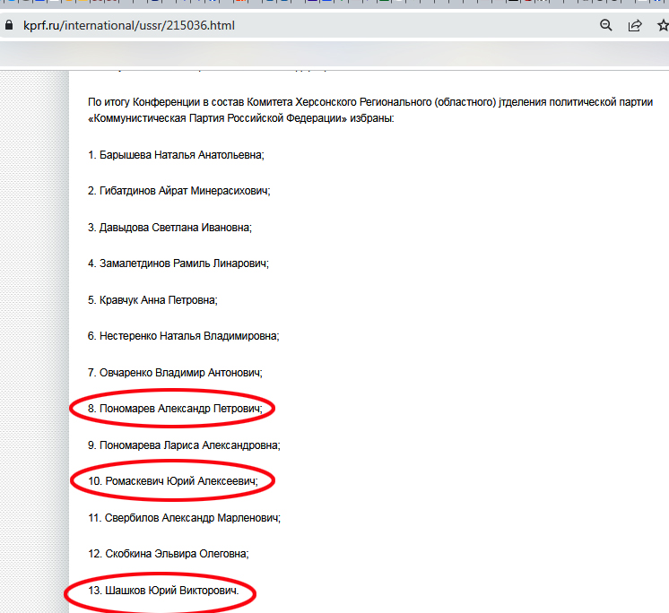Разом з ним в партію вступили ще два колаборанта: Стрілковський селищний голова Олександр Пономарьов і директор дитячо-юнацького клубу моряків при Херсонській міській раді Юрій Шашков.