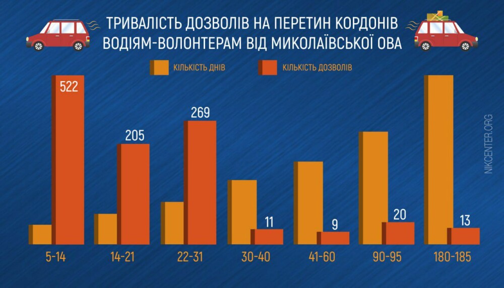 З кінця травня і до листопада 2022 року дозвіл на тимчасовий виїзд за кордон від Миколаївської обласної військової адміністрації отримали 778 чоловіків. Більшості з них дозволили бути за межами країни не більше 5-14 днів. Однак частина волонтерів отримала дозволи тривалістю від кількох місяців до пів року.
