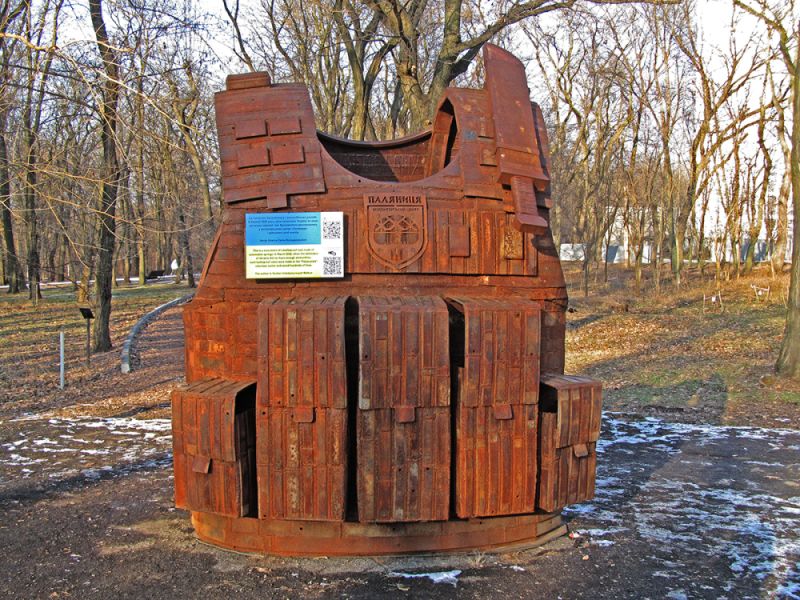 Бронежилет вагою 2,5 тони встановлений в місті Дніпро в парку імені Гагаріна.