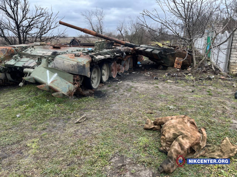 «6 березня вони з танка застрелили чоловіка. Він сів на мотоцикл, ще в цій формі такій (робочому одягу, схожому на камуфляж – Ред.), бінокль ще, кажуть, взяв. Він тільки став, і вони його… Ще місяці два вони його не давали ховать. Так він і лежав там», – розповідає місцева жителька Людмила Авраменко.
