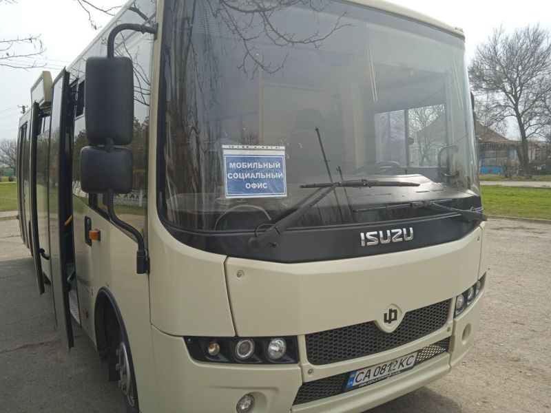 Фотографією, де зображений один з автобусів, викрадених під час окупації Херсона на підприємстві «Херсонський комунальний транспортний сервіс», проілюстроване повідомлення так званої «влади» окупованої частини Херсонщини про роботу «мобільних соціальних офісів».