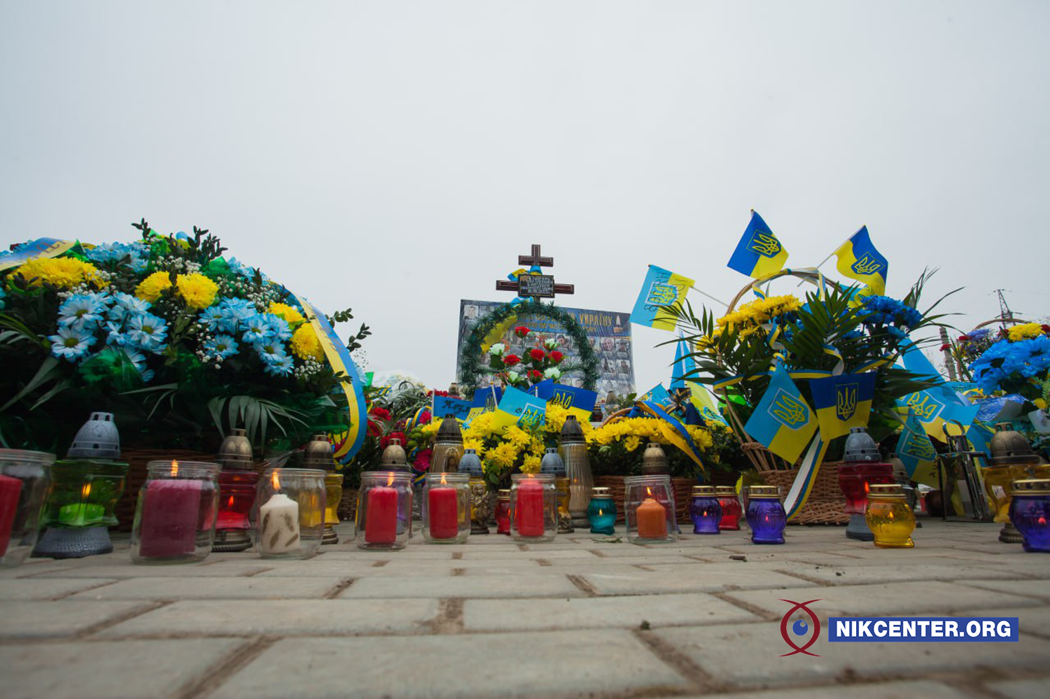 На річницю трагедії колона автівок вирушила з Одеси до Миколаєва. Рідні і друзі бійців, які загинули від російського обстрілу в одній з миколаївських військових частин, принесли до пам’ятного хреста квіти і лампадки.