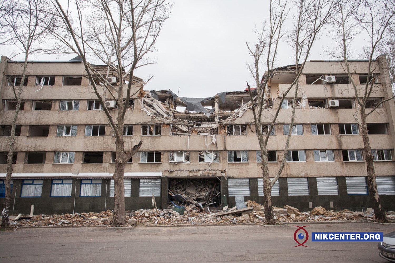Така ж доля спіткатиме і готель «Миколаїв», у який влучили російські ракети С-300 вранці 14 липня. Внаслідок удару в будівлі зруйновано перекриття трьох верхніх поверхів, вибито вікна і двері.