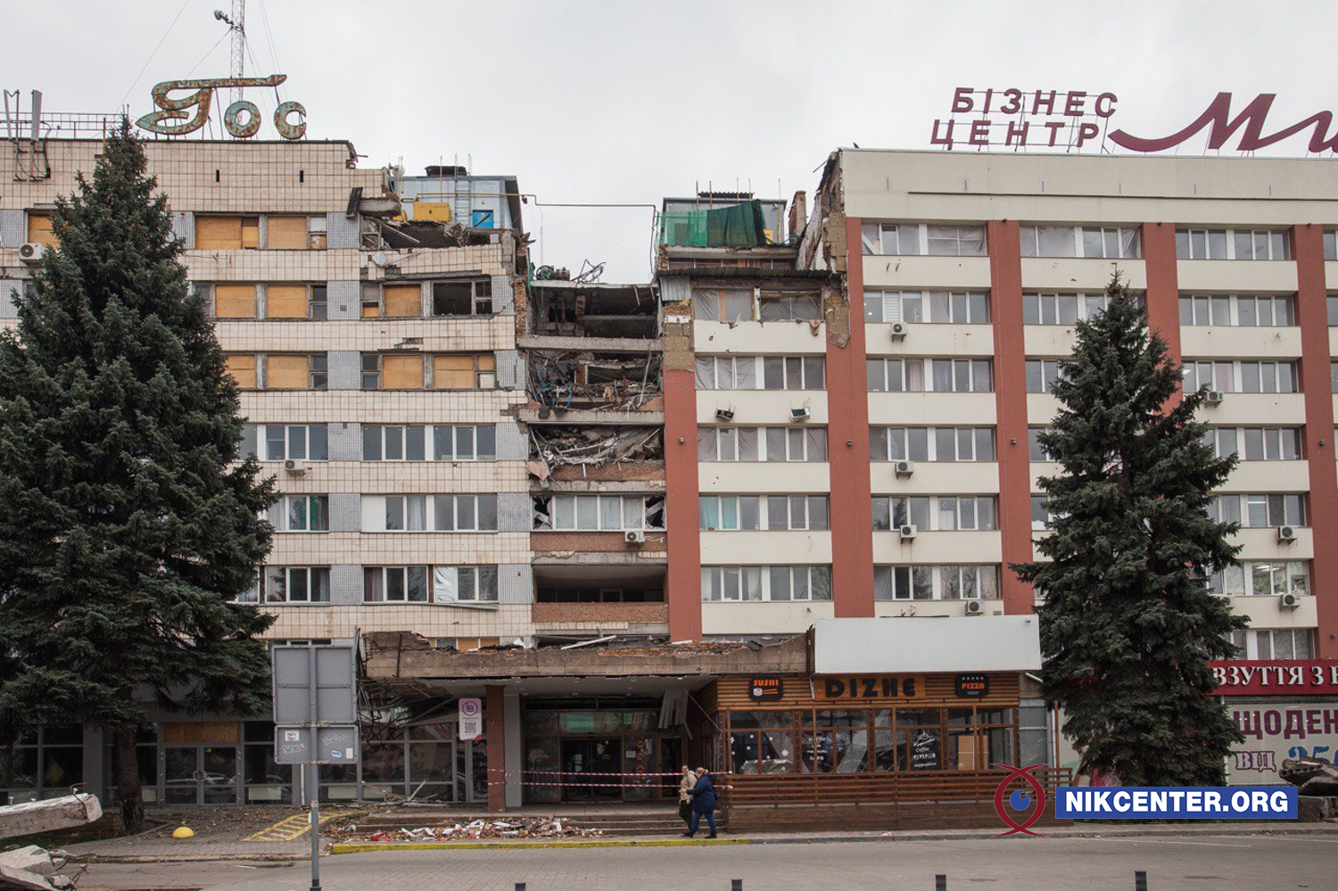 Така ж доля спіткатиме і готель «Миколаїв», у який влучили російські ракети С-300 вранці 14 липня. Внаслідок удару в будівлі зруйновано перекриття трьох верхніх поверхів, вибито вікна і двері.