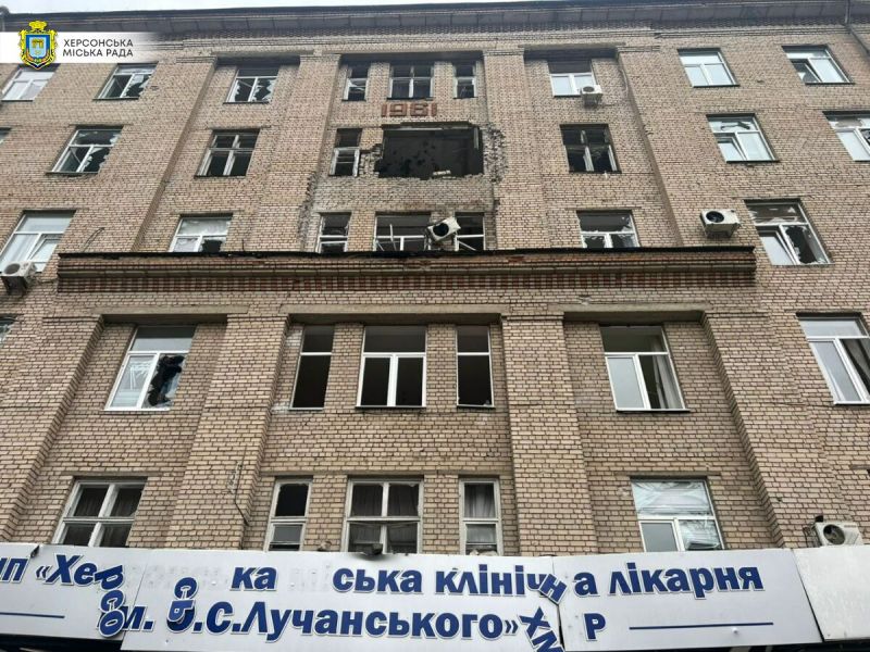 Вночі росіяни обстріляли лікарню у Херсоні, завдано серйозних пошкоджень. ФОТО