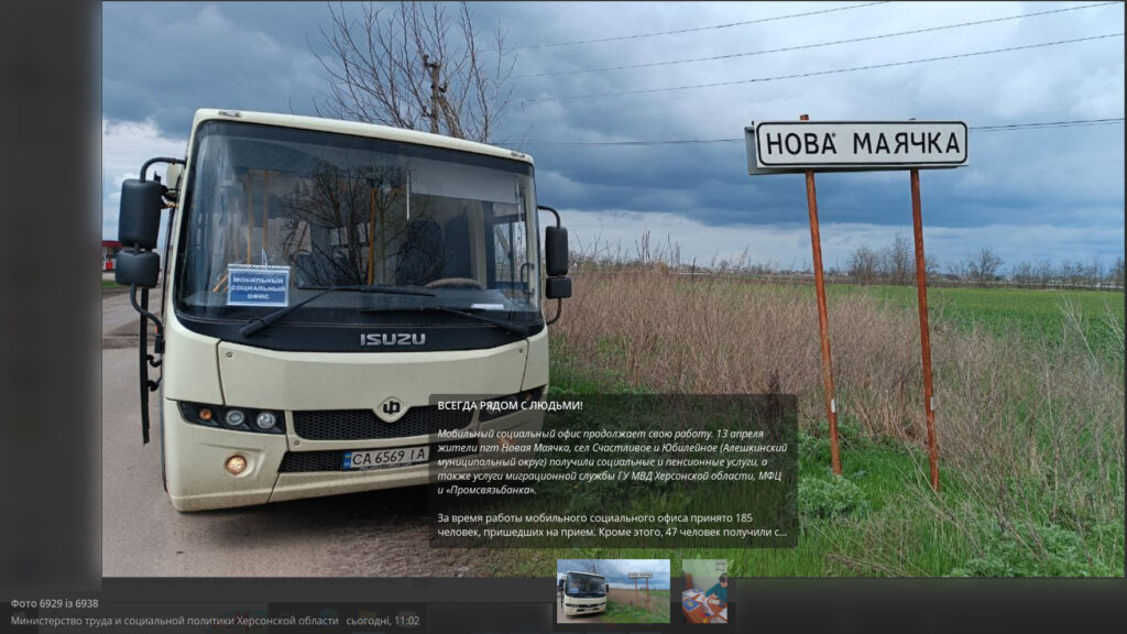 Раніше ми писали, що один з таких автобусів «засвітився» на фото, розміщеному в Телеграм-каналі окупаційного «міністерства праці і соціальної політики Херсонської області». Автобус використовувався саме як «мобільний соціальний офіс».