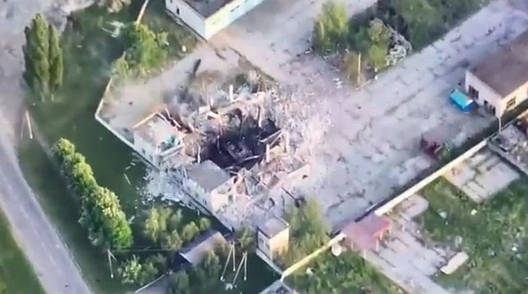 Українське оборонне відомство опублікувало відео ангару, де стояв ворожий танк. На ньому можна побачити, що в результаті роботи ЗСУ будівля зараз перетворилася на руїни, а те, що в ній зберігали, на металобрухт.