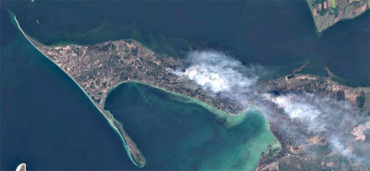На території тимчасово окупованої Кінбурнської коси вирує пожежа. Клуби диму добре видно з Очаківської громади.