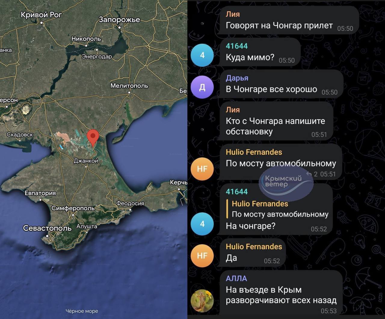 Російські окупанти та російські ЗМІ стверджують, що пошкодження мостів, зокрема Чонгарського та його дублюючого мосту, стало результатом ракетних ударів крилатими ракетами типу Storm Shadow. На кадрах, які поширюються у Telegram-каналах та російських ЗМІ, видно значні пошкодження – пробоїни в дорожньому покритті та конструкції.