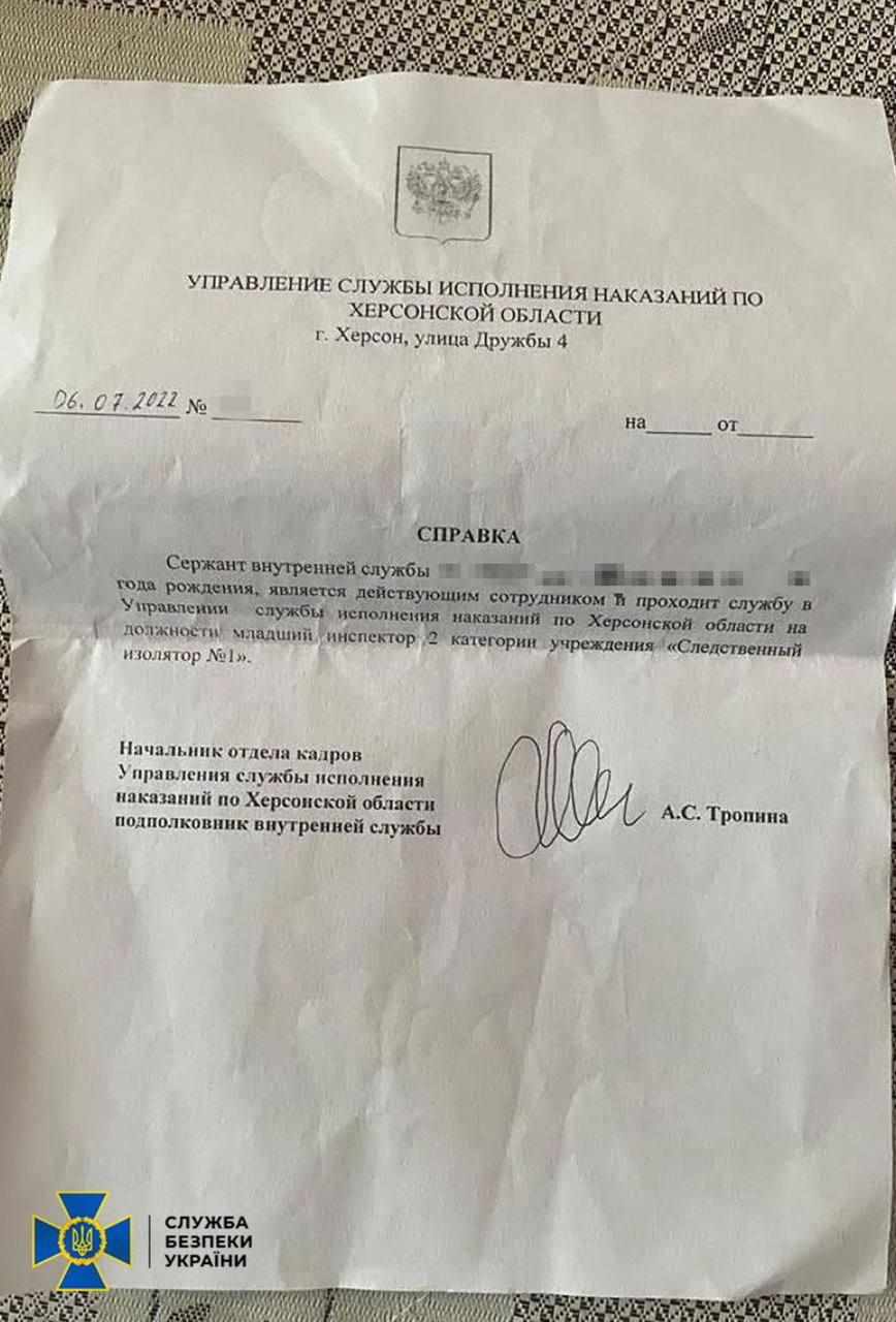 Зловмисник виконував обов’язки “молодшого інспектора” у місцевій в’язниці, де розміщували українців, викрадених окупантами. Він брав участь у побиттях та підтримував погрози вбивством. Таким чином росіяни хотіли придушити в Херсоні рух опору.