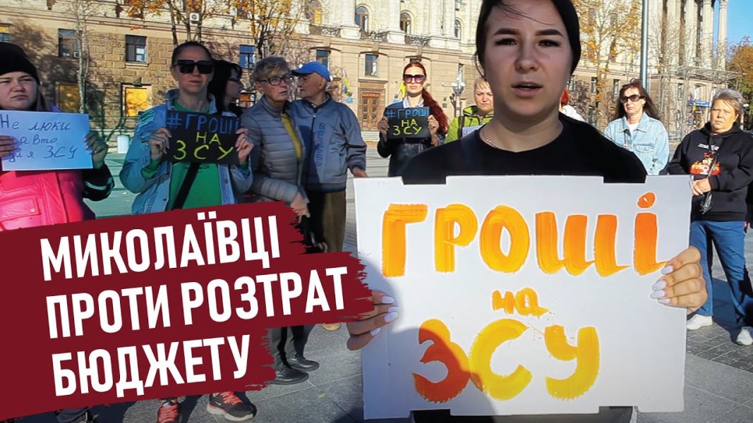 28 жовтня у центрі Миколаєва волонтери та небайдужі містяни провели мирну акцію проти розтрати бюджетних коштів під час повномасштабної війни. Учасники вийшли із плакатами «Гроші на ЗСУ» до будівлі міської ради, закликаючи керівництво міста та області першочергово фінансувати потреби військових.
